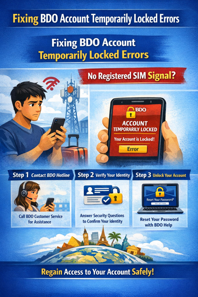 If your BDO account is locked and you cannot receive an SMS OTP because you have no signal abroad, you must use alternative verification methods to regain access.